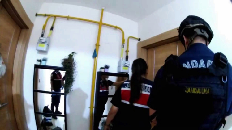 150 jandarma personelin katılımıyla 17 adrese eş zamanlı baskında; şüphelilerin gözaltına alındığı ve yüklü miktarda delil niteliğindeki evrak ile dijital materyallere el konulduğu anlar yer aldı.