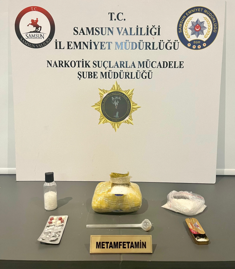 Samsun'da polisin takibi sonucu durdurulan bir araçta yapılan aramada 1 kilo 100 gram metamfetamin ele geçirildi.