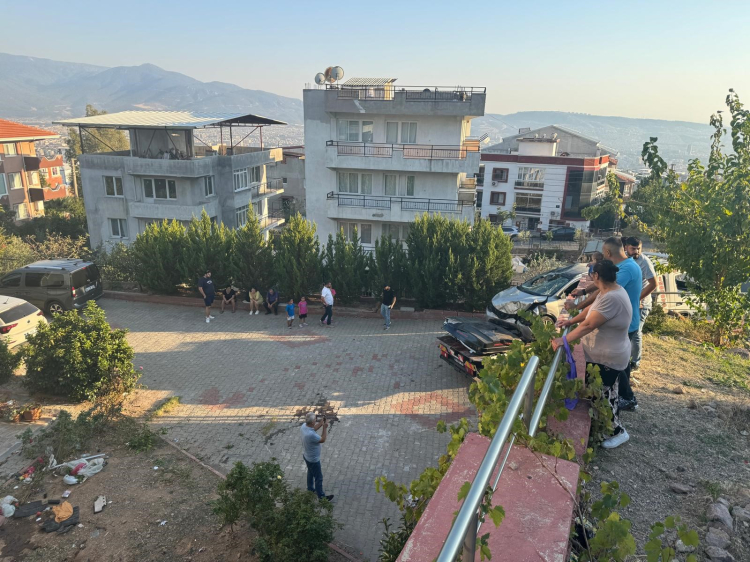 Korkulukları aşan otomobil, yaklaşık 10 metre yükseklikten apartmanın bahçesine düştü.