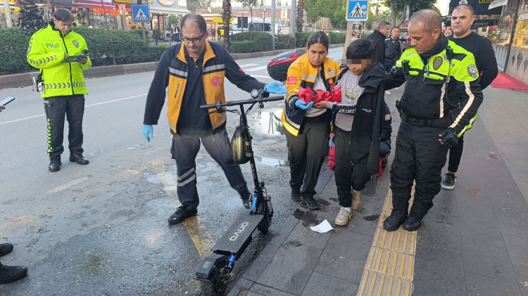 Manavgat'ta yayalara yol vermek için duran midibüse arkadan çarpan elektrikli scooter sürücüsü yaralandı.