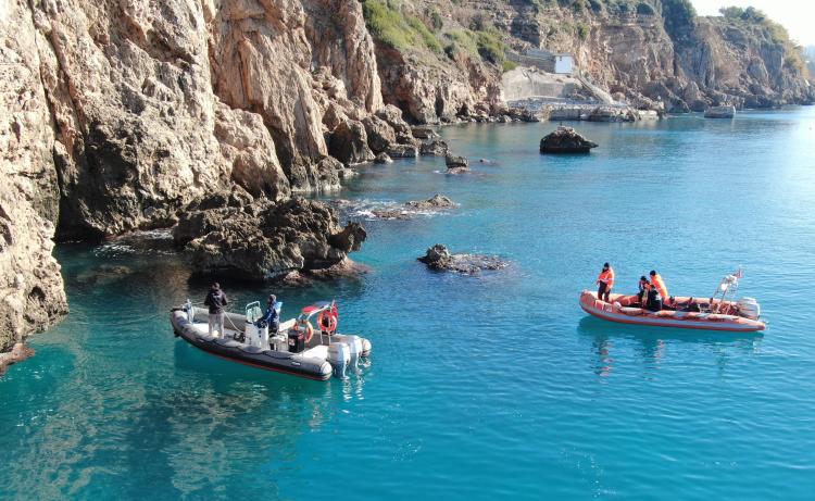 Antalya Emniyeti Deniz Liman Şube Müdürlüğüne bağlı dalgıçlar kayıp genci bulmak için sualtı mağaralarında arama çalışması yaptı.