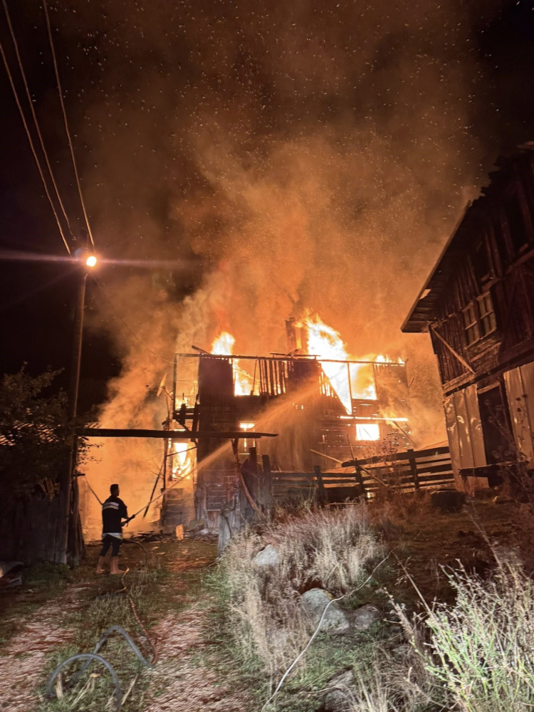 Bolu'da çıkan yangında 2 katlı ahşap ev tamamen yanarak küle döndü.