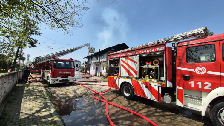 Düzce’nin Akpınar Mahallesi'nde 2 katlı bina alevlere teslim oldu.