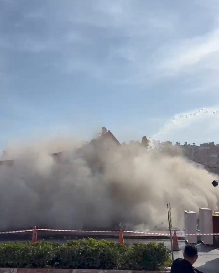 Gerekli tedbirlerin alınmasından sonra kent merkezinde bulunan binanın titretme yöntemiyle yıkılması uygun görüldü. Binayı yıkmak için gelen iş makinesi, 2 katlı yapıya dokunmadan titreşimle binayı yıktı. Titreşim ile yıkılan 2 katlı binada toz bulutları oluştu.