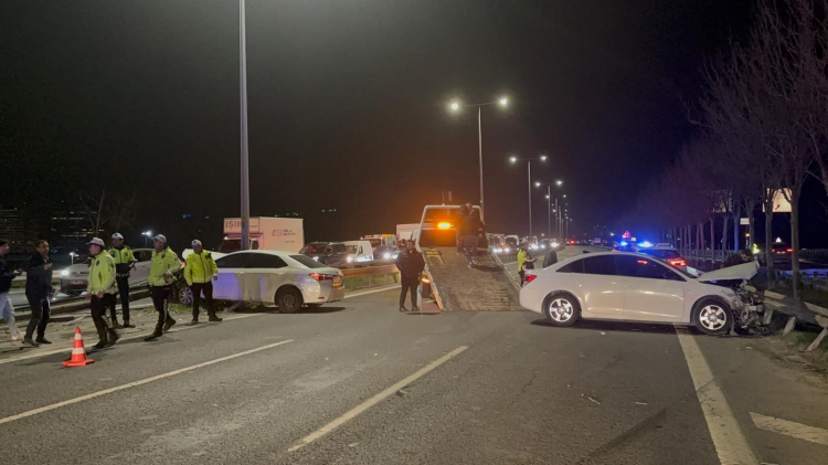 Kağıthane’de aynı şeritte seyir halinde giden 2 otomobil çarpışarak bariyerlere saplandı.