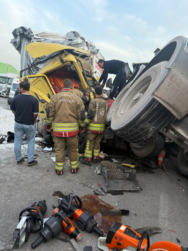 Hatay'da 2 tırın çarpışmasıyla yaşanan kazada 3 kişi yaralandı.