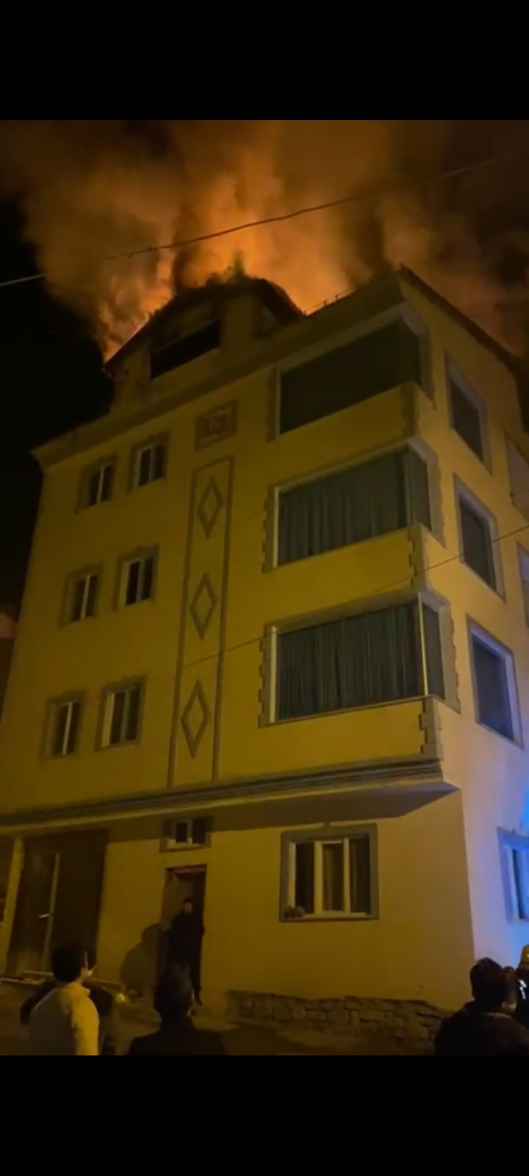 4 Katlı Binanın Çatısı Alevlere Teslim Oldu