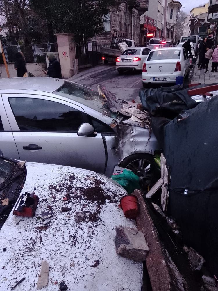 Hasar gören diğer arabanın sahibi Hayatı Danışmant ise, “Beni eşim aradı, yandaki bina yıkılınca sesi duyup beni aradı. Bizim arabanın önü, camı, farı ve vites kutusu gitmiş, dikiz aynam kopmuş. Heyecanla beni aradı. Ben de işten geldim, arabanın hali böyle. Arabanın içine taşlar da düşmüş” dedi.
