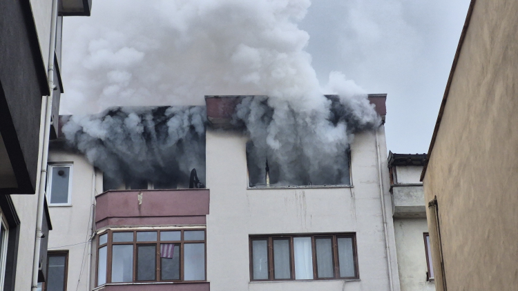 Düzce şehir merkezinde 5 katlı binanın en üst katında çıkan yangında 2'si çocuk 3 kişi dumandan etkilendi.