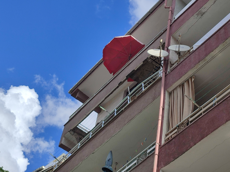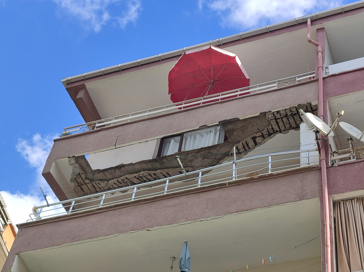 5 katlı bir binanın 5. katındaki dairenin balkonu çöktü