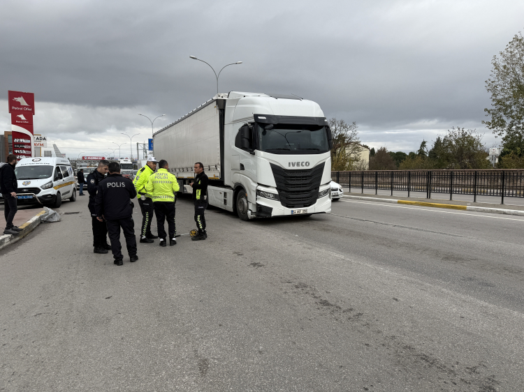 Erenler ilçesi Yeni Sakarya Caddesi üzerindeki ışıklı kavşakta M.E. idaresindeki 54 AGF 090 plakalı Iveco marka tır, dolmuştan indikten sonra araçların arasından yolun karşısına geçmeye çalışan S.Ç.'ye (58) çarptıktan sonra altın aldı. Durumun haber verilmesi üzerine bölgeye sağlık, polis ve itfaiye ekipleri sevk edildi. Olay yerine gelen itfaiye ekipleri, kadını sıkıştığı yerden çıkartarak sağlık ekiplerine teslim etti.
