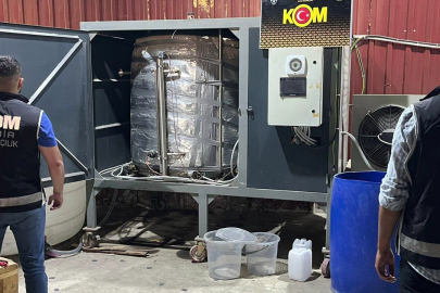 Kaçakçılık Suçlarıyla Mücadele Şube Müdürlüğü ekipleri, Bornova ilçesinde bir iş yerinde sahte içki imalatı yapıldığı bilgisi üzerine harekete geçti.