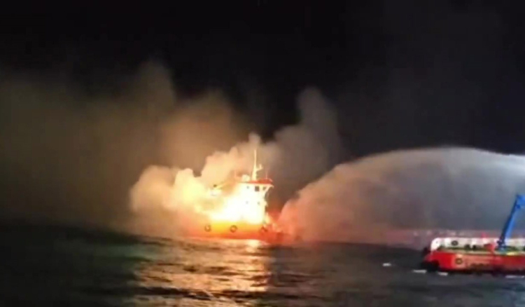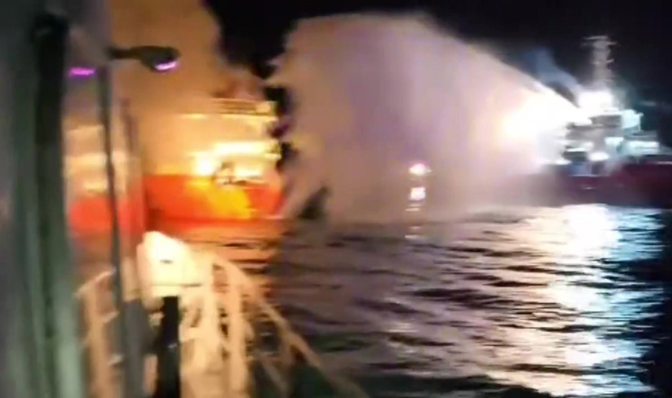 İtfaiyenin gemide soğutma çalışmaları sürüyor.