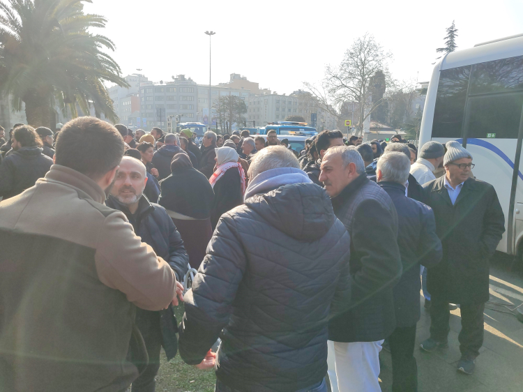 Fatih Saraçhane'de bulunan İBB binası önünde toplanan 8+1 taksi sahipleri, mağdur olduklarını belirterek, İBB Başkanı Ekrem İmamoğlu'nu protesto etti.