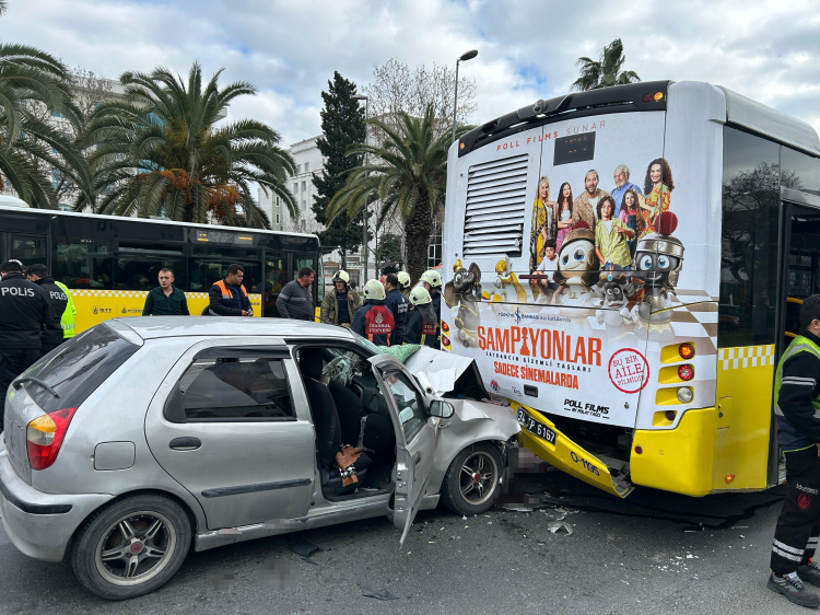 Fatih Vatan Caddesi'nde kadın sürücünün kullandığı ve freninin tutmadığı iddia ettiği otomobil, İETT otobüsüne arkadan çarptı.