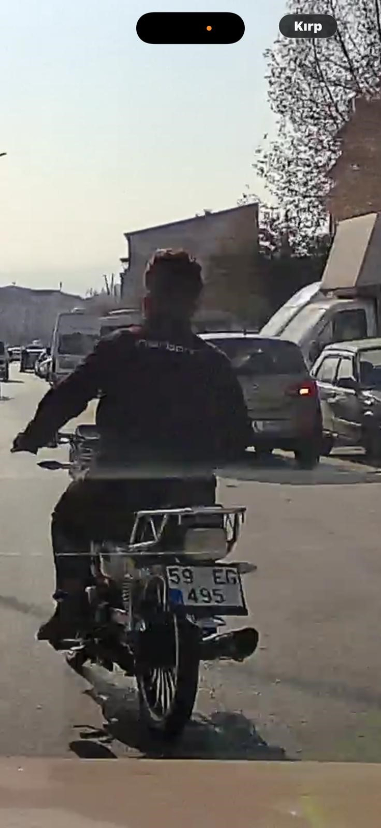 İlçe merkezinde abart egzoz kullanarak halkın yoğun olduğu ana arterlerde akrobatik hareketler yapan 19 yaşındaki Y.Ş. isimli motosiklet sürücüsü, duyarlı vatandaşlar tarafından araç içi kamera kayıtlarıyla tespit edildi. 59 EG 495 plakalı motosikletle yaptığı tehlikeli manevralar hem trafiği hem de yayaların can güvenliğini riske atan sürücünün görüntüleri sosyal medyada yayınlandı.