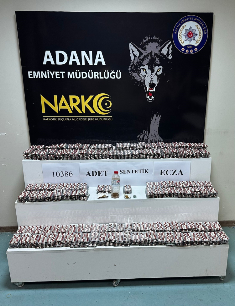 Alınan bilgiye göre, İl Emniyet Müdürlüğü Narkotik Suçlarla Mücadele Şubesi ekipleri, uyuşturucu madde ticareti yaptığı öne sürülen H.U. (26), R.B. (20) ve Ö.Ş. (31)'i takibe aldı. Yapılan takip neticesinde şüphelilerin Yüreğir ilçesine bağlı Kiremithane Mahallesi'ndeki adresleri belirlendi. Adrese yapılan baskında 3 şüphelide yakalandı. Evin içerisinde yapılan aramada bir valiz içinde 10 bin 386 adet uyuşturucu hap ele geçirildi.