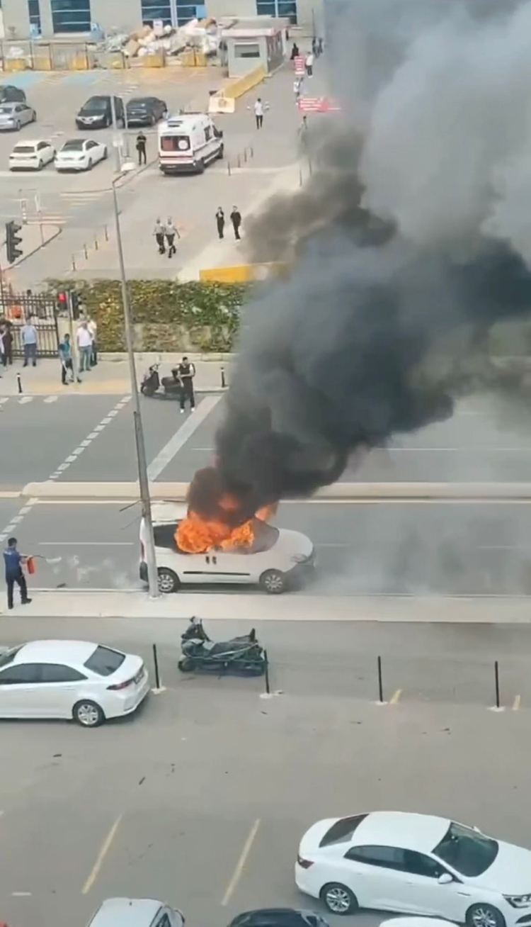 İstanbul Anadolu Adalet Sarayı önüne aracıyla gelen bir şahıs, cadde ortasında otomobilinden inerek aracını ateşe verdi. Araç kısa sürede alev topuna döndü.