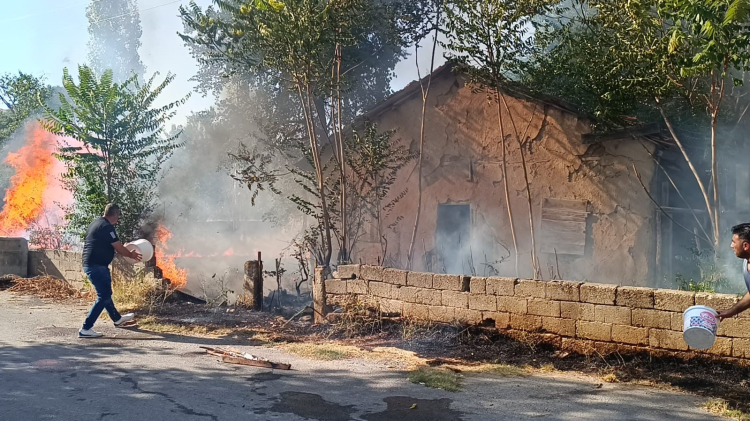 Afyonkarahisar'ın Sandıklı ilçesi Hisar Mahallesi Eski Afyon Caddesi'nde bulunan metruk bir binanın bahçesinde yangın çıktı.