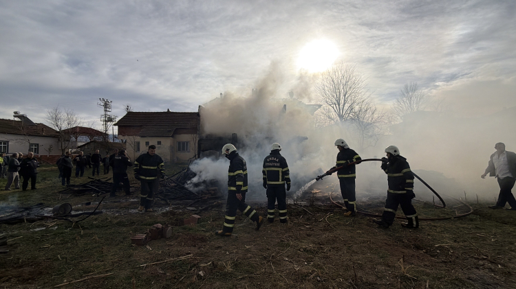 Ahırda çıkan yangın, bitişiğindeki iki katlı evin çatısına sıçradı