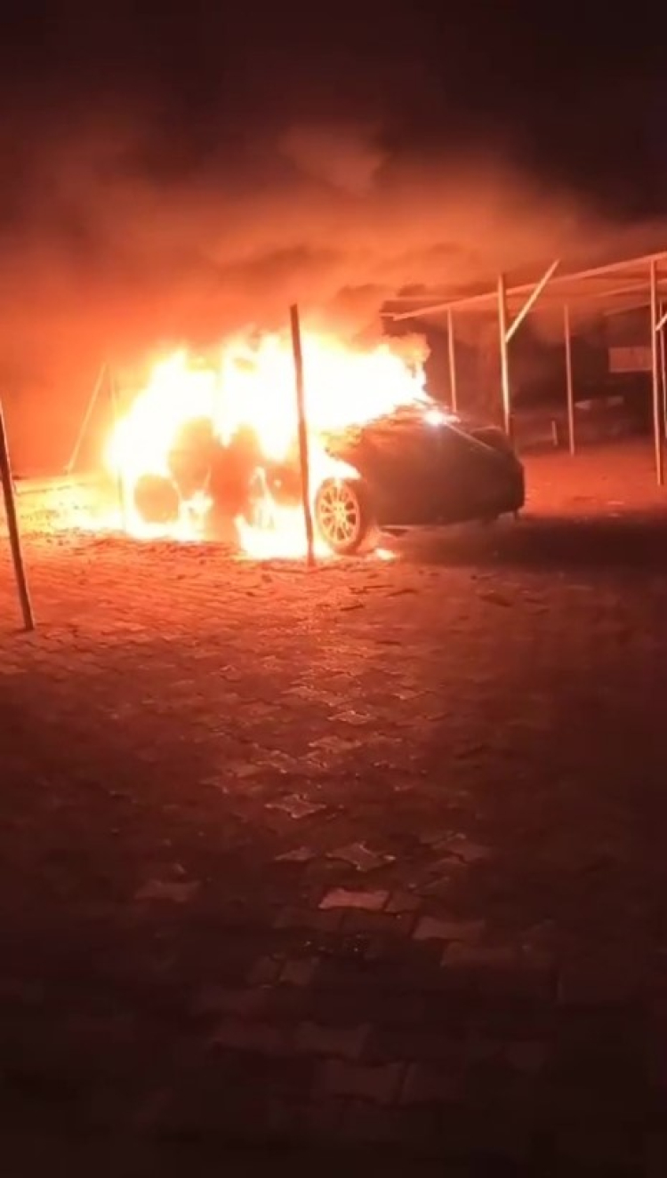 Yangın anı cep telefonu ile görüntülenirken, bir kişinin yangının başlangıcından saniyeler sonra bölgeden koşarak uzaklaştığı anlar güvenlik kamerasına yansıdı. Yangında küle dönen otomobilin sahibi, olayı eski damadının gerçekleştirdiğini iddia edip kamera kayıtları ile birlikte karakola giderek şikayetçi oldu.