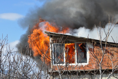 Isparta'da 2 katlı müstakil bir evde çıkan yangında, alevler evin her yerini sararken ev sahibi can havliyle dışarı çıkmaya çalıştı.