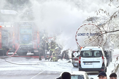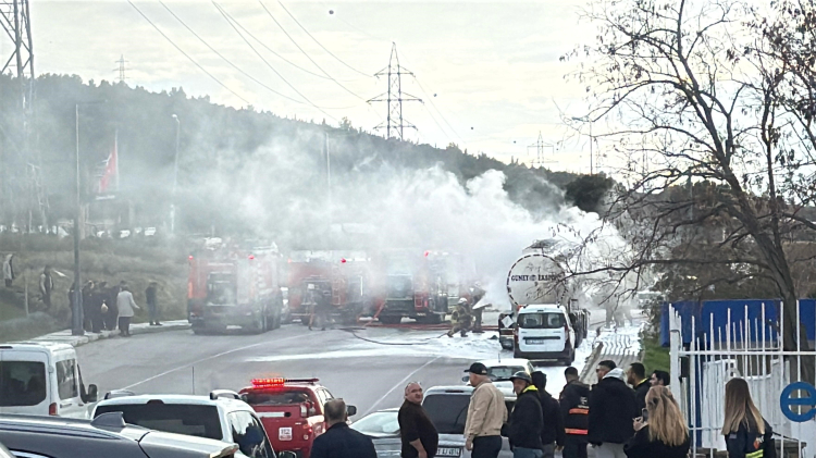 İzmir'in Aliağa ilçesinde park halindeki bitkisel yağ yüklü tankerin çekici kısmında yangın çıktı.