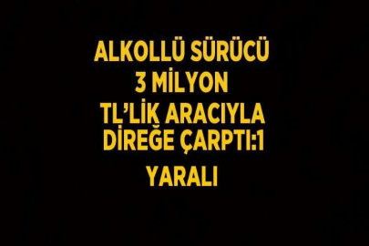 ALKOLLÜ SÜRÜCÜ 3 MİLYON TL’LİK ARACIYLA DİREĞE ÇARPTI:1 YARALI
