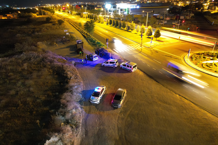 Polis ekipleri tarafından durdurulan aracın sürücüsü ve yanında bulunan bir arkadaşı, aracı ve araçta bulunan diğer arkadaşlarını bırakarak kaçtı. Polis ekipleri kaçan şahısları dron ile aradı.