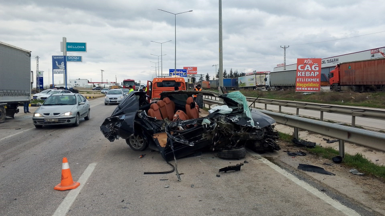 Edinilen bilgiye göre, Merzifon Galericiler Sitesi yakınlarında seyreden Mehmet Büyükada yönetimindeki 34 BCZ 586 plakalı Mitsubishi Colt marka otomobil, banket dışında park halindeki tıra çarptı. Savrularak bariyerlere de çarpan otomobil parçalara ayrıldı.