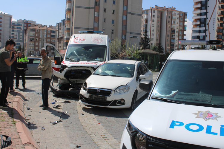 Kayseri'nin Kocasinan ilçesinde hasta taşıyan ambulans ile otomobilin çarpışması sonucu 1'i sağlık personeli, 2 kişi yaralandı.