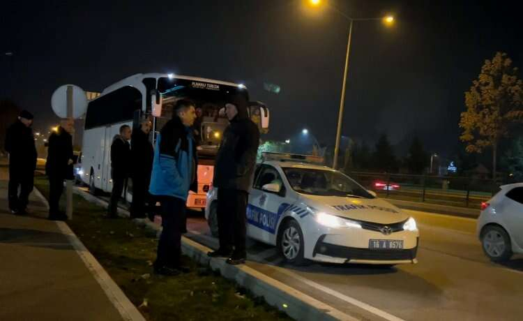 Sürücü Alper I. yönetimindeki 16 ASY 658 plakalı tur otobüsü, İnegöl Emniyet Müdürlüğü ekiplerinin dikkati üzerine ilçe girişinde durduruldu.