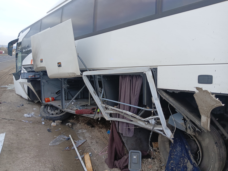 Ankara'da sürücüsünün rahatsızlanması sebebiyle kontrolden çıkan şehirlerarası yolcu otobüsü yol kenarındaki beton bariyere çarptı.