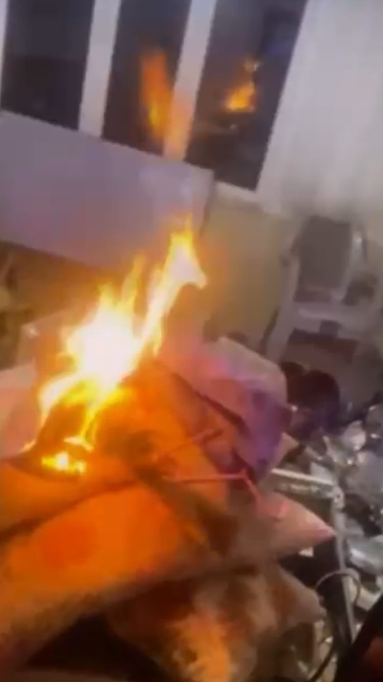 Olayın görgü tanıklarından Ebubekir Burunsuz, "Aile arasında bir kavga meydana geldi. Kavganın ardından Samet Ö.'nün annesi evden çıkıp gidince, ‘Ben yalnız mı kalacağım?' diyerek evde bazı şeyleri kırmaya başladı. Daha sonra öfkesini alamayınca evi yakmış. Evden dumanlar çıktığını gördük. Biz de itfaiyeye haber verdik. Şu anda müdahale ediyorlar. Şahsı polisler gözaltına aldı" dedi.