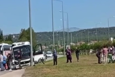 Antalya'da freni patlayan halk minibüsü önce kırmızı ışıkta bekleyen araca, ardından refüjdeki aydınlatma direğine çarptı.