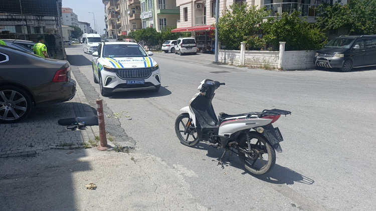 Antalya'nın Manavgat ilçesinde direksiyon hakimiyetinin kaybedilmesiyle devrilen motosiklet sürücüsü yaralandı.