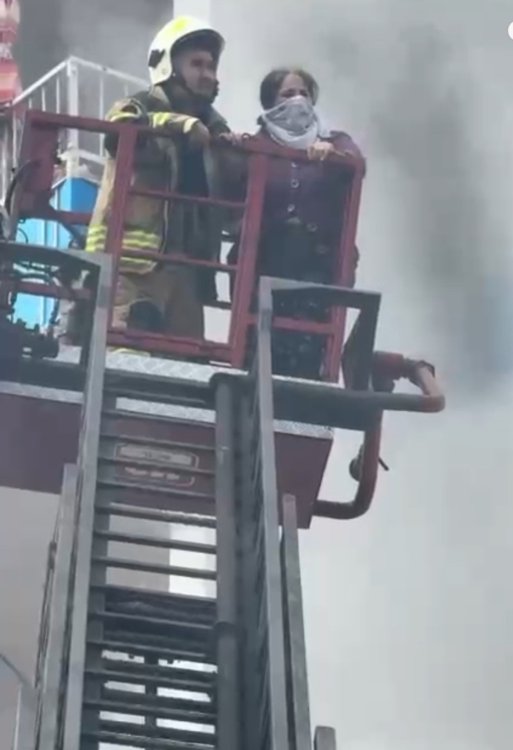 5. katında mahsur kalan Gülhanım Alpay, itfaiye ekipleri tarafından kurtarılırken, dumandan etkilenmemek için yazma ile ağzını kapatmasına rağmen rahatsızlanınca ambulans ile hastaneye kaldırıldı. Alpay'ın kurtarılma anı cep telefonu kamerası ile kaydedildi. Ekiplerin müdahalesiyle yangın kontrol altına alınırken, olayla ilgili inceleme başlatıldı.
