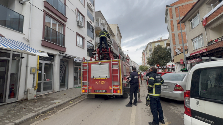 Edirne'de apartmanın çatısında sıkışan martı, itfaiye ekiplerince kurtarıldı.