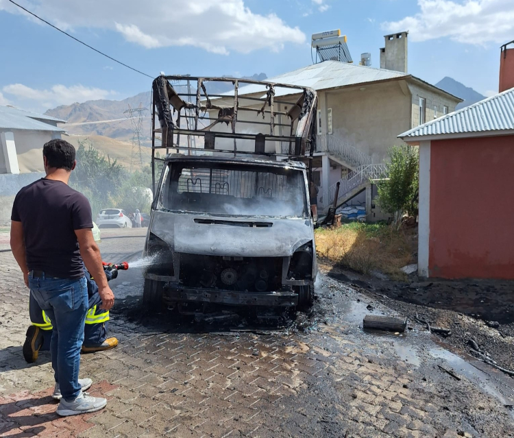 Van'ın İpekyolu ilçesinde park halindeki bir kamyonet alev alev yanarak hurda yığınına döndü.
