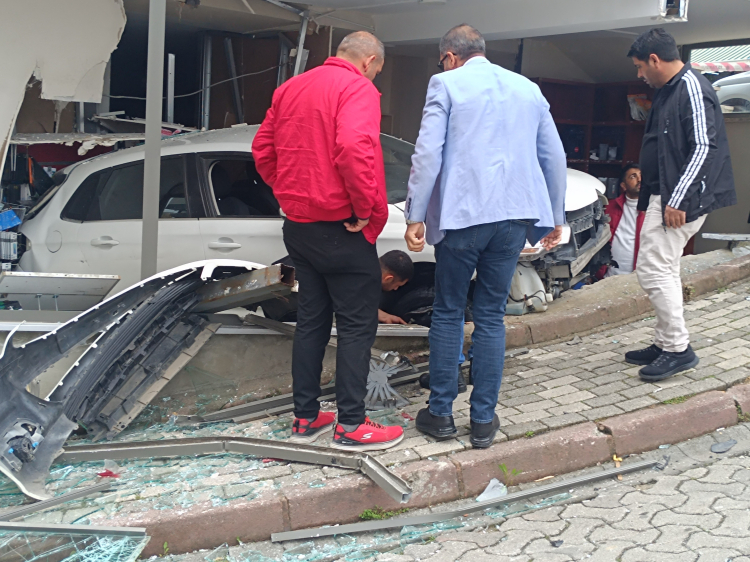 Sancaktepe'de sürücüsünün kontrolünden çıkan otomobil, yol kenarındaki telefoncu dükkanına girdi.