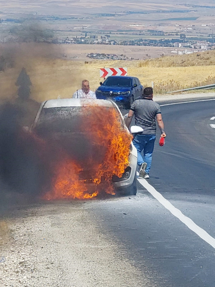 Yozgat’tan Kırşehir istikametine giden araç aniden alev aldı.