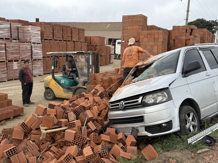 Aracıyla Tuğla Fabrikasına Daldı!