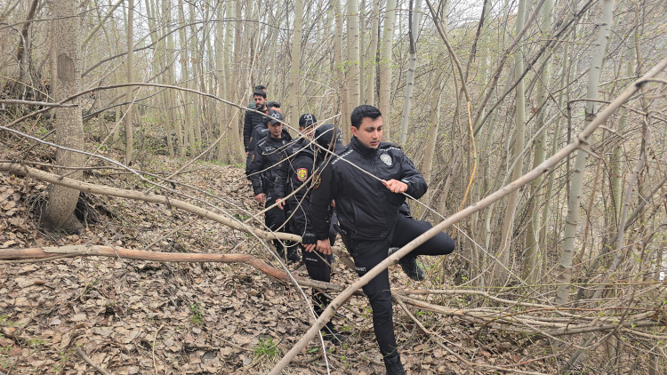Çevik kuvvet ekipleri ve kadavra arama köpeği Melo, ormanlık alanı taradı.