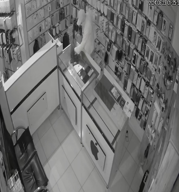 Şahsın işyerine ait küçük bir havalandırma camını kırarak içeri girdiği ve telefonları çaldığı anlar işyeri içerisinde bulunan güvenlik kameraları tarafından görüntülendi. Film sahnelerini aratmayan görüntülerde hırsızın içeriye atlayarak girdiği telefonları çaldıktan sonra aynı camdan dışarıya çıktığı görüldü.