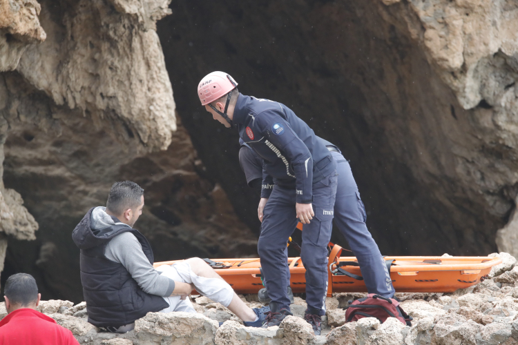 Antalya'da balık tutmak için falezlerden inerken kayalıktan düşerek bacağını kıran kişi, itfaiye ve AFAD ekipleri tarafından kurtarıldı.