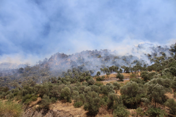 Ekiplerin yangına müdahalesi başladı. Ormanlık ve zirai alanda etkili olan alevlere karşı 7 hava aracı, 32 arazöz, 7 kepçe, 9 su tankeri, 244 personelle müdahalede bulunuluyor. Yangını kontrol altına almak için ekiplerin müdahalesi devam ediyor.
