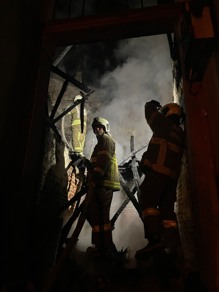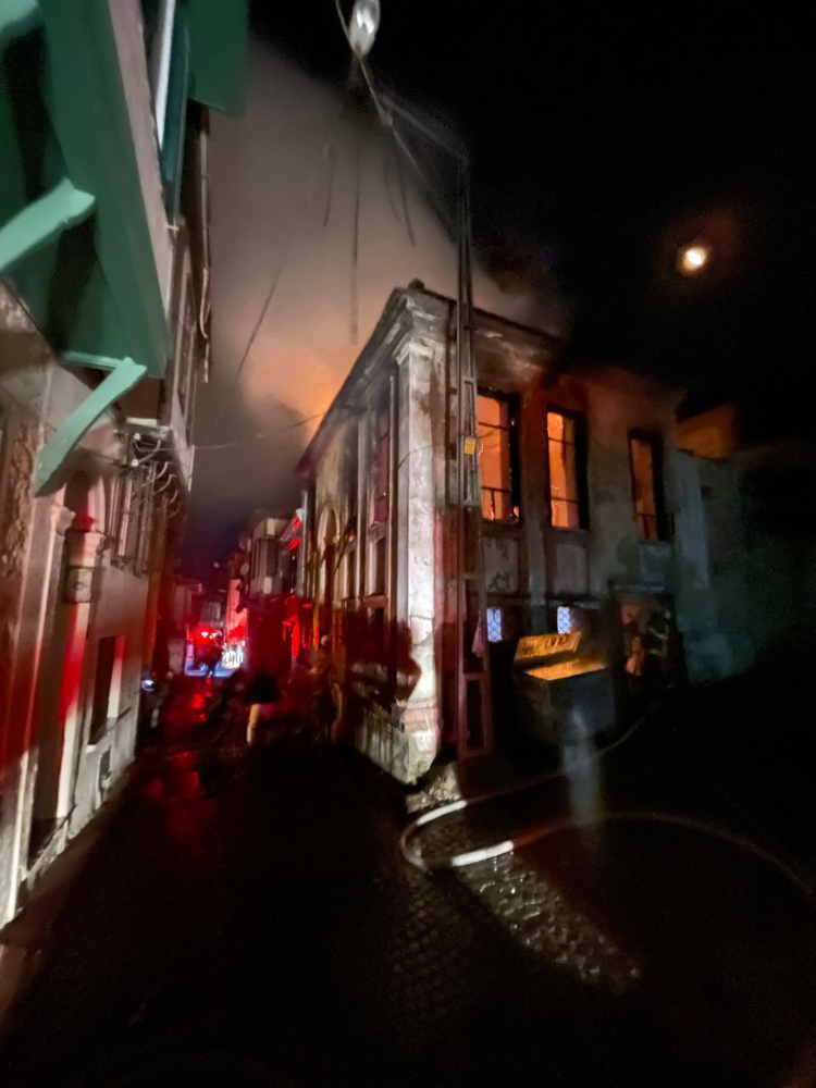 İçinde kimsenin yaşamadığı bitişik nizamdaki her iki binadaki yangın nedeniyle, sokak aydınlatma direklerine ait kabloların da tutuşması nedeniyle oluşan arklar adeta geceyi aydınlattı.