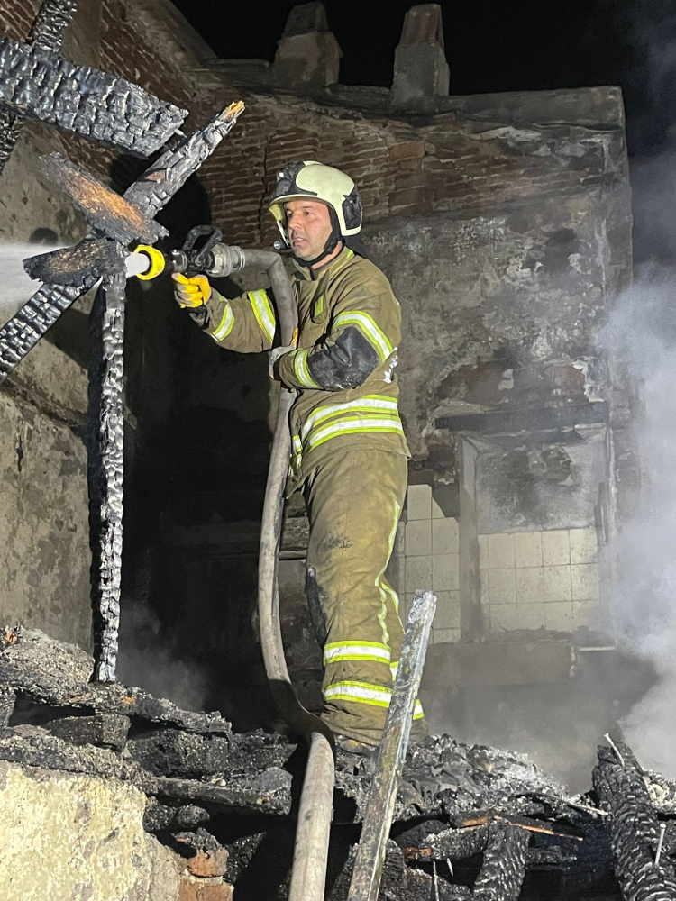 Yangının iki metruk bina ile bitişik durumda olan evlere sıçramasından endişeli olan mahalle sakinleri korku dolu anlar yaşadı.