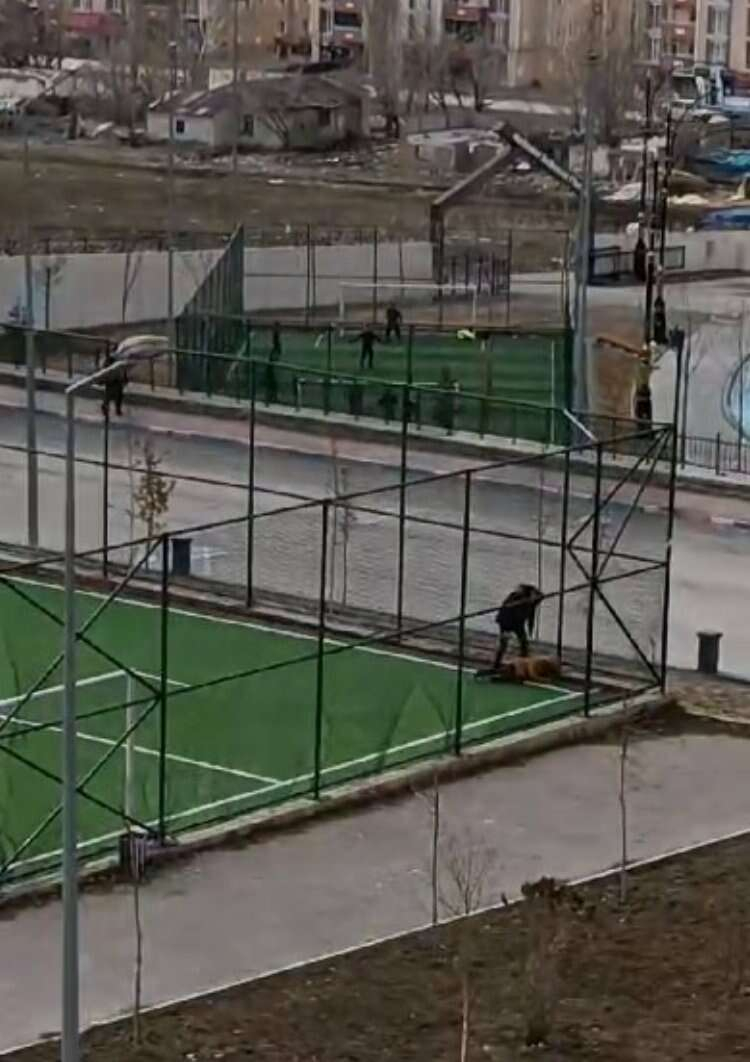 Erzurum’da bir babanın çocuğunu halı sahada feci şekilde darp etmesi saniye saniye kameralara yansıdı.