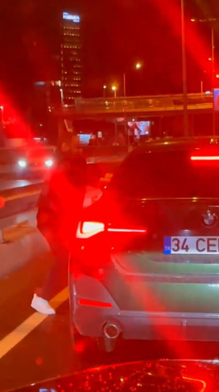 İstanbul Bakırköy’de trafikte yol verme nedeniyle kadın sürücüyle tartışan trafik magandası yol ortasında aracını durdurdu.